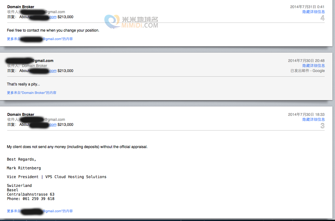 1、你会收到一封邮件,自称域名经纪人,说有客户要买你的域名并要你报价。